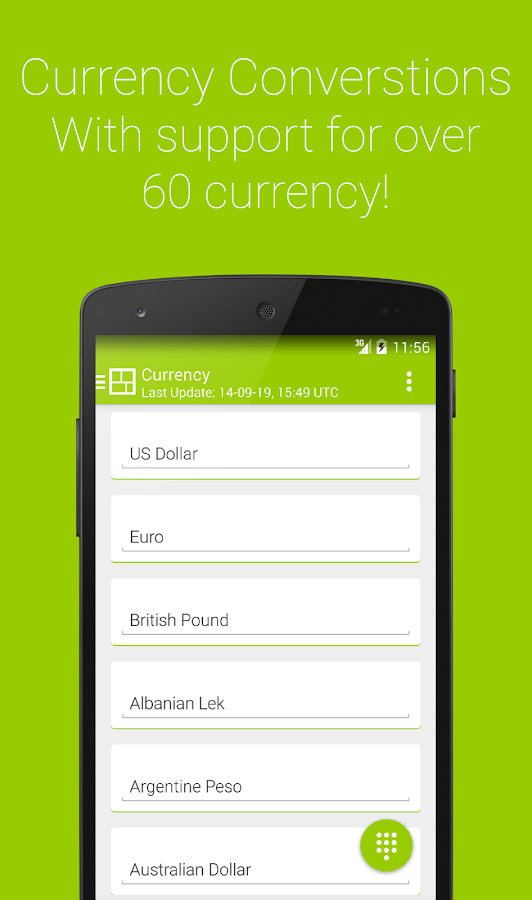 • Currency conversion with over 60 currencies.