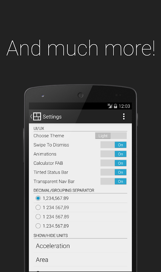 • Choose between different grouping and decimal separators.